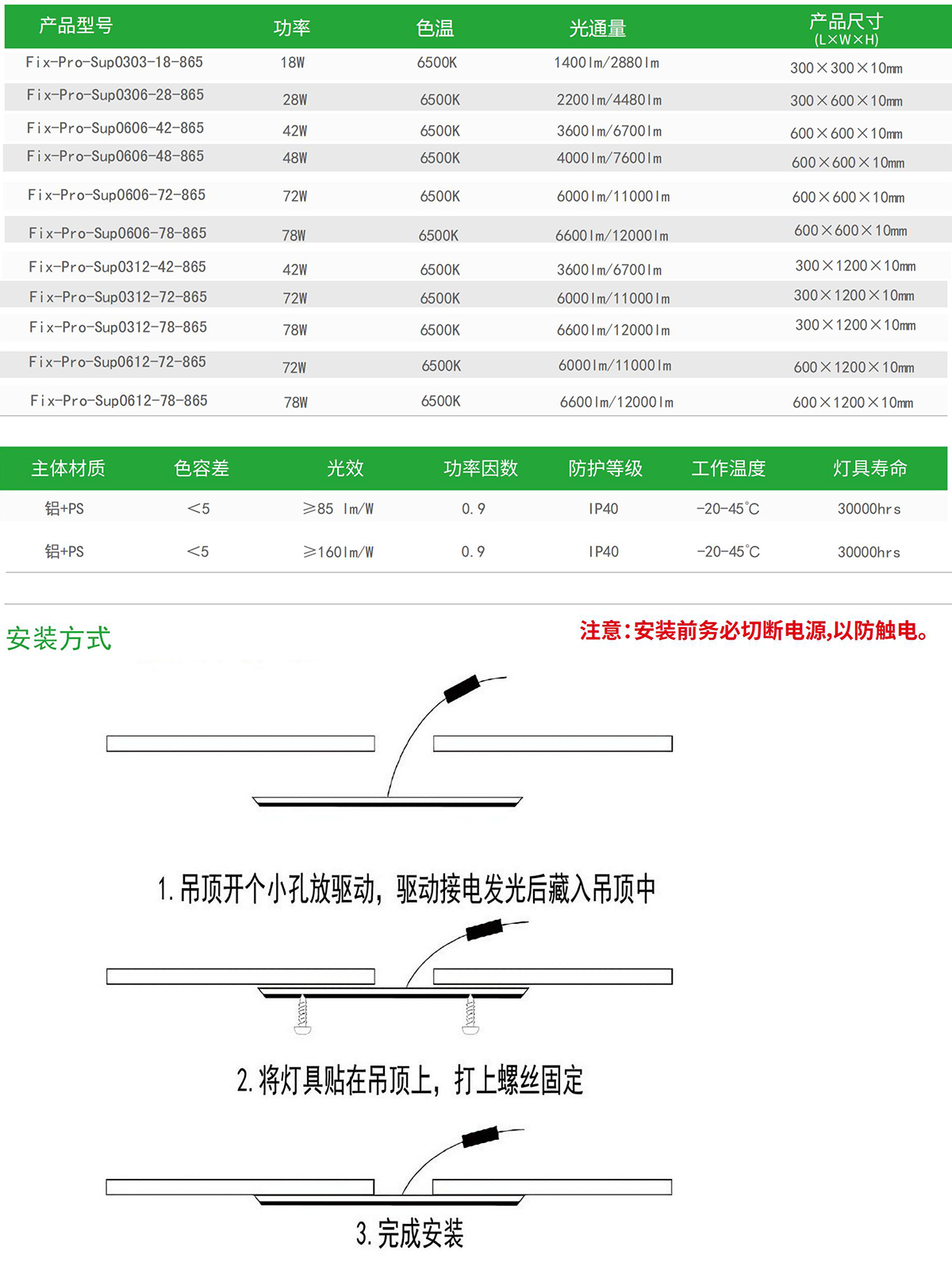 螺釘固定,安裝簡單,完美貼平天花,方便快捷。